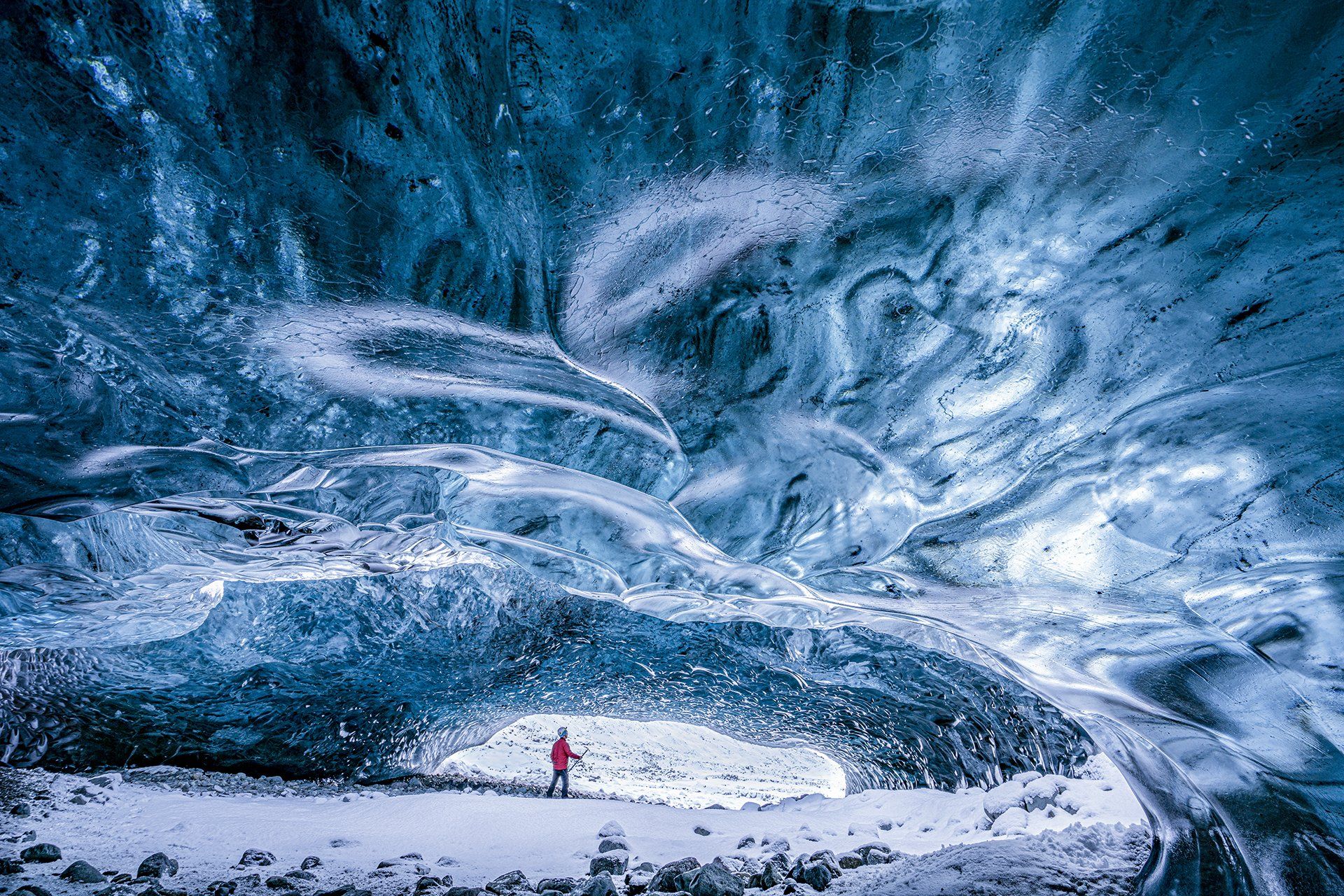 Iceland’s impressive glacier caves form naturally. When water melts, it carves out breathtaking tunnels and caves beneath thick sheets of ice. As glaciers are always on the move and the ice continues to melt, each ice cave is constantly varying in structure, changing and evolving into different shapes, sizes and formations.